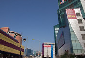 정동극장 로비 입구를 카메라로 세로로 담아보니 묘한 조화가 보입니다. 하단은 한국의 전통방식의 공간이고 상단과 옥상은 파라솔이 보입니다