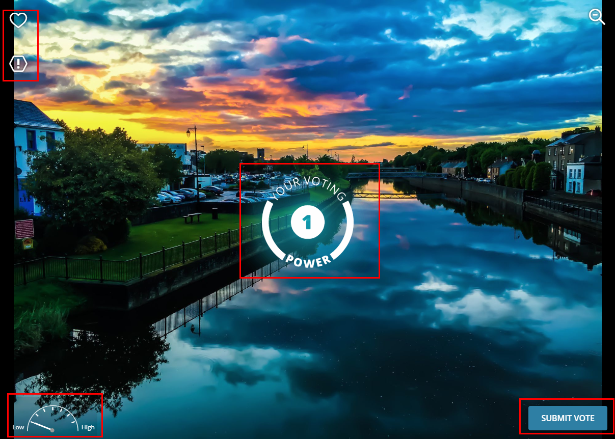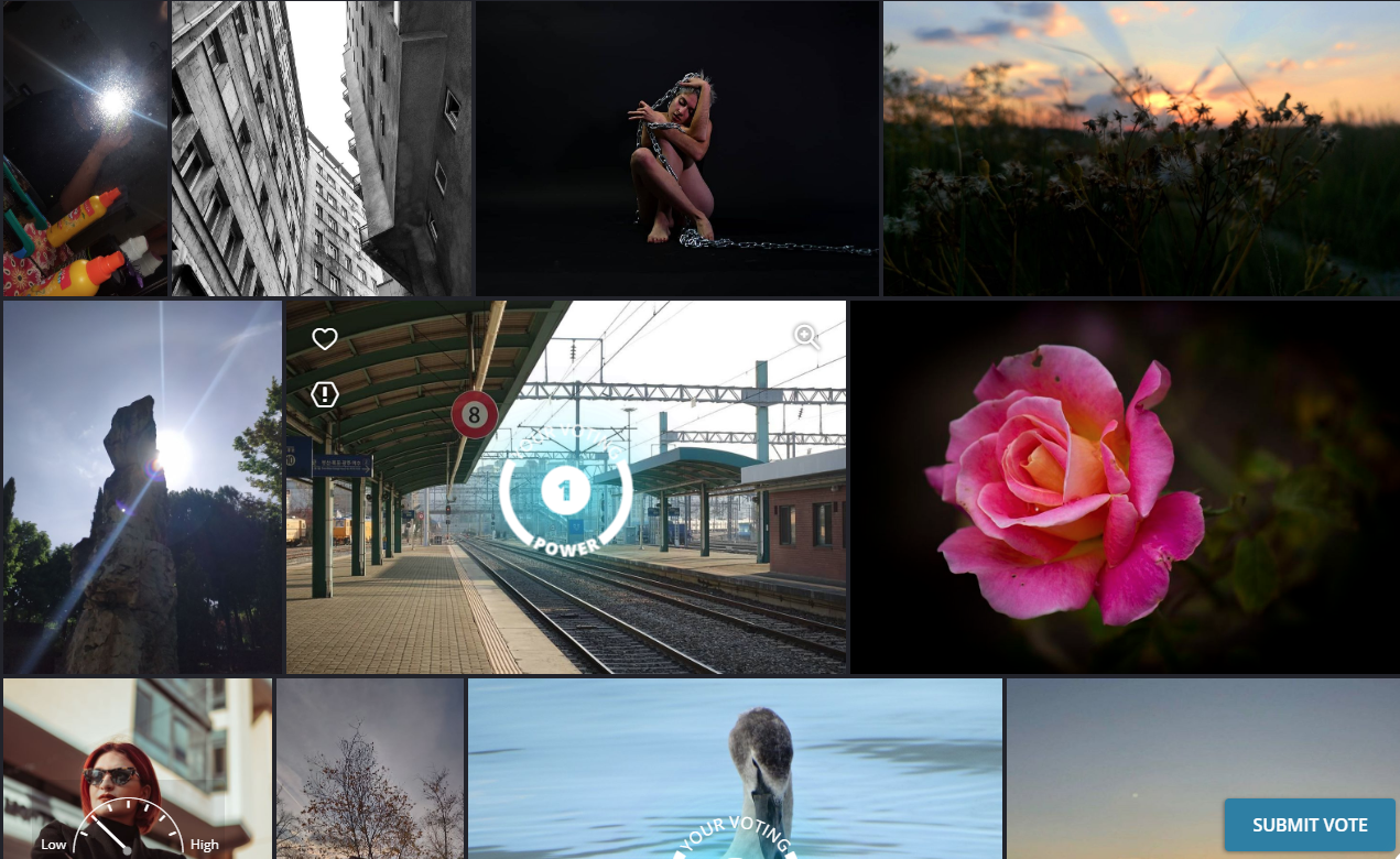 투표는 빠르게 할 수 있습니다. 모바일 앱도 있어서 모바일 앱에서도 할 수 있습니다. 추천을 주고 싶은 사진을 클릭해서 투표를 한 후에 하단의 SUBMIT VOTE를 눌러야 투표가 됩니다. 투표를 하고 그냥 나가 버리면 말짱 꽝이 됩니다. 투표를 할수록 하단 왼쪽의 게이지가 LOW에서 HIGH로 올라가는 것을 눈으로 확인할 수 있습니다.