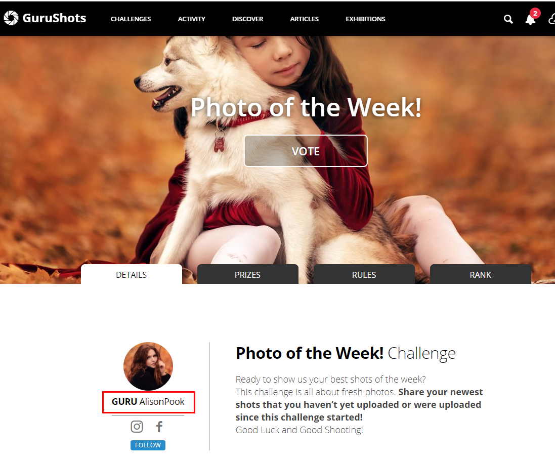 예를 들어 AlisonPook라는 구루가 시작한 'Photo of the Week'라는 사진 챌린지는 어떤 사진들을 올릴 수 있는지 주제가 보입니다. 영어로 되어 있지만 어려운 영어는 아닙니다. 이 주제는 별 다른 주제는 없고 이번 주 최고의 사진을 올리세요!네요. 아무거나 올려도 됩니다.