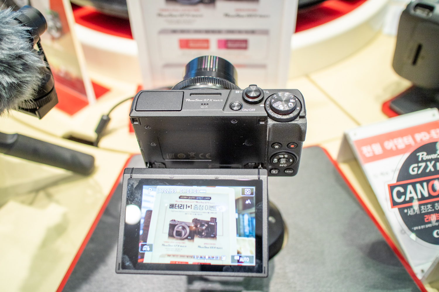 반면 캐논 G7 X Mark III는 2019년 7월 출시되었고 2000만 화소 1인치 BSI 이미지센서를 사용했고 광학 4.2배 줌, 광학 손떨방, 3인치 틸트업 LCD, 1초에 30장 연속 촬영, 4K(3840 X 2160) 동영상 촬영이 가능합니다.