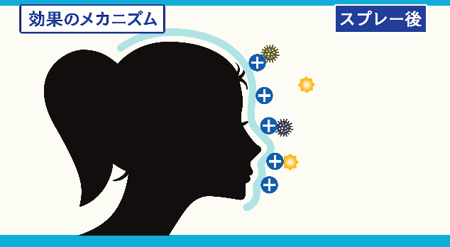 イオンの力でウイルス、花粉、PM2.5、黄砂をブロック! ふんわりエアミストが顔・髪をやさしく包み込み、目、鼻、口への侵入を防ぎます。
