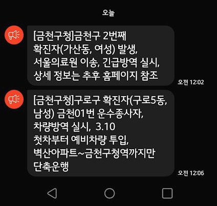 잠에 들었는데 문자 메시지 소리에 잠을 깼습니다. 오전 12시에 올 정도로 급한 메시지였나 봅니다. 금천구 주민들 중에 이 메시지에 많이 깼을 겁니다.