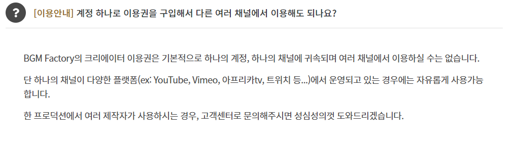 유튜브 배경음악 월정액 서비스 BGM팩토리에 대한 궁금한 점