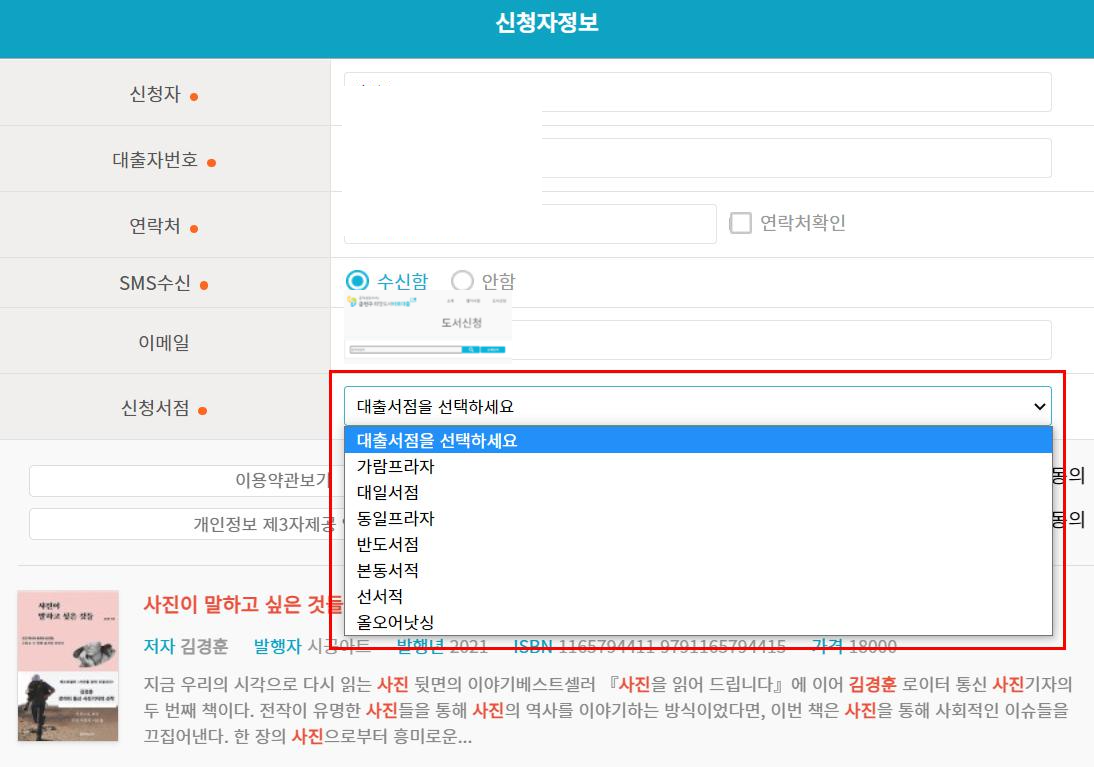 위에서 소개한 대로 지역 서점에 가서 책을 신청한 후 지역 서점에서 책을 구매해서 비치하고 문자가 오면 책을 대출받아오면 됩니다.