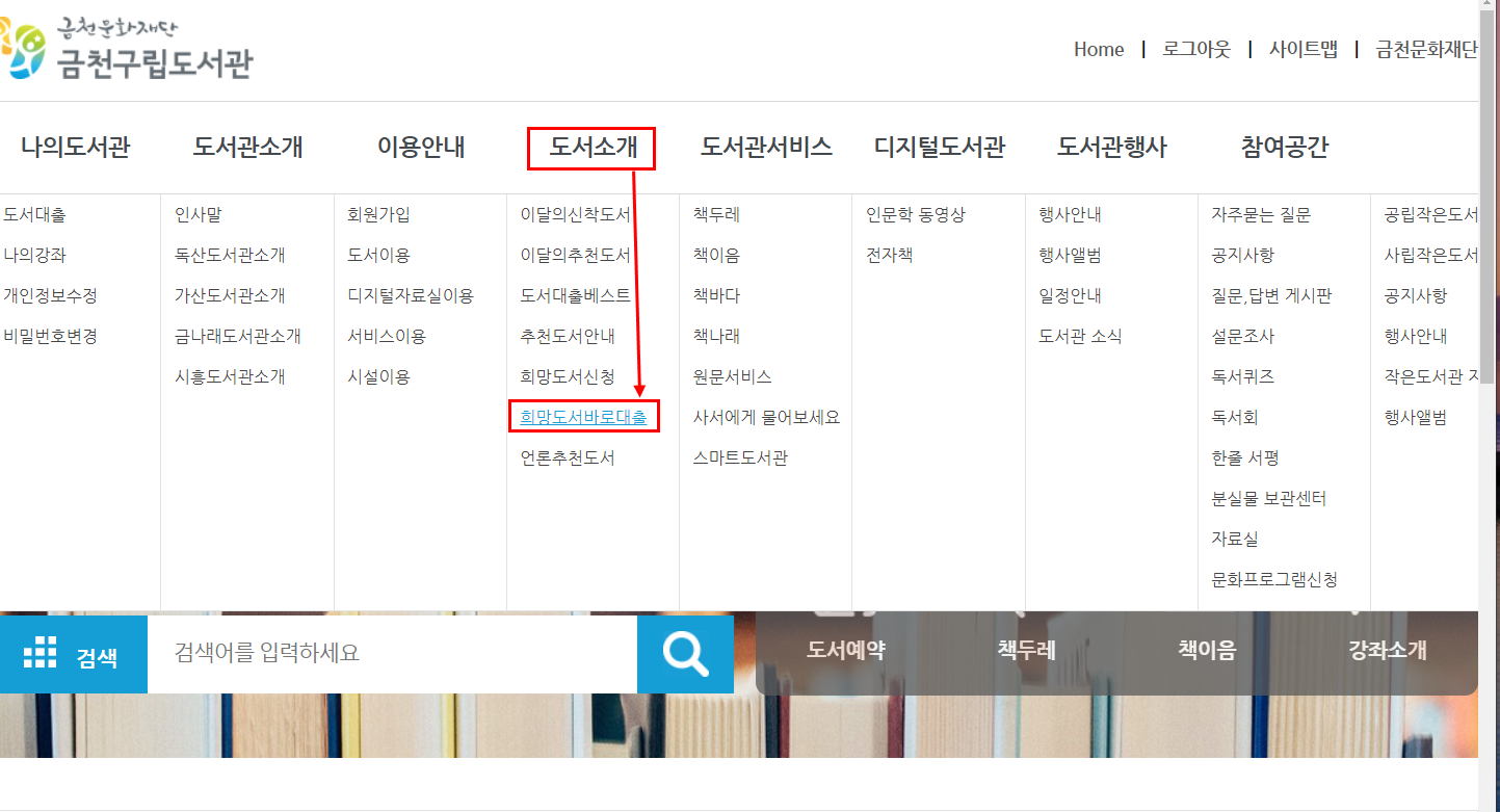 금천구립도서관 홈페이지 도서소개 >> 희망도서바로대출을 누르면 신청할 수 있습니다.
