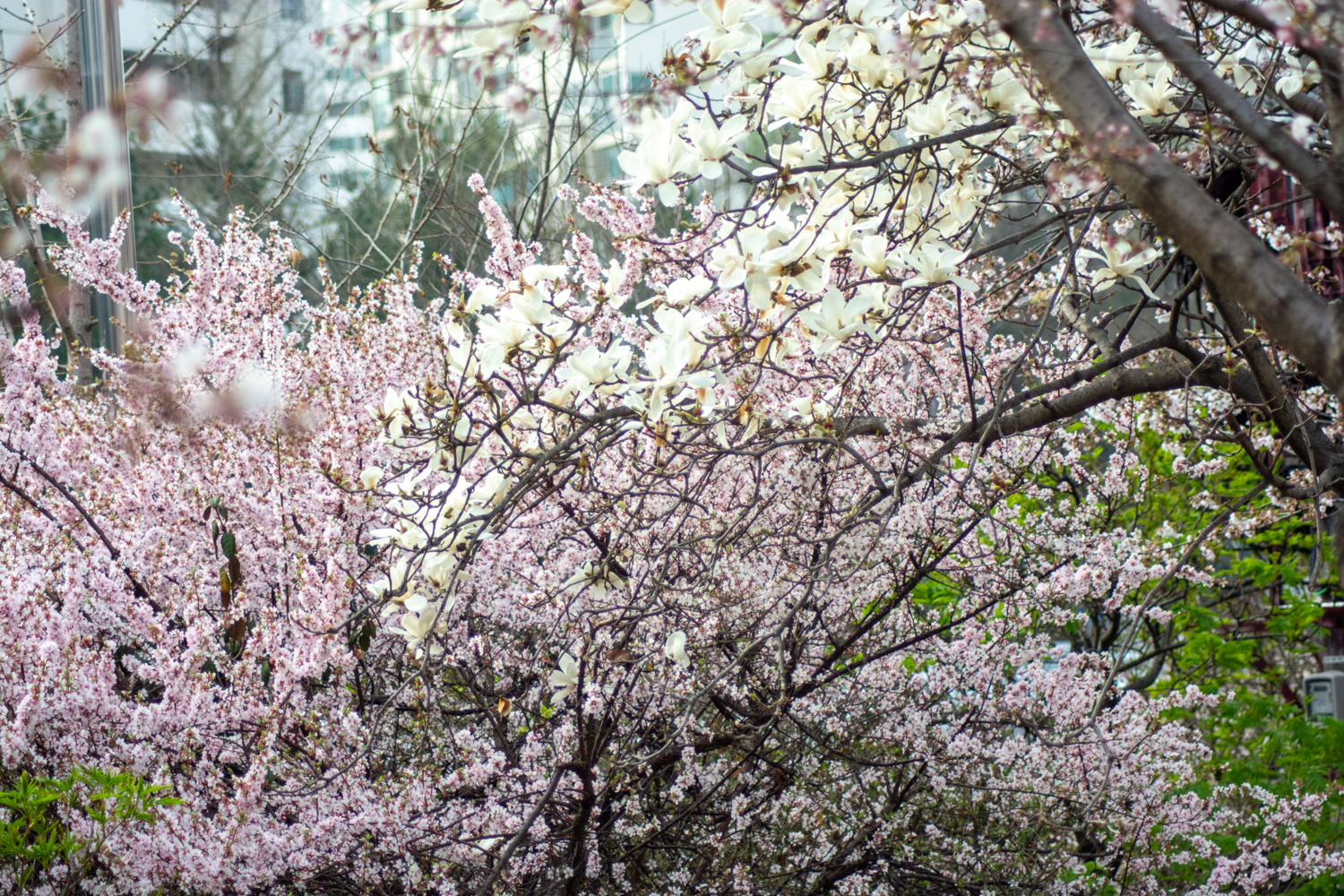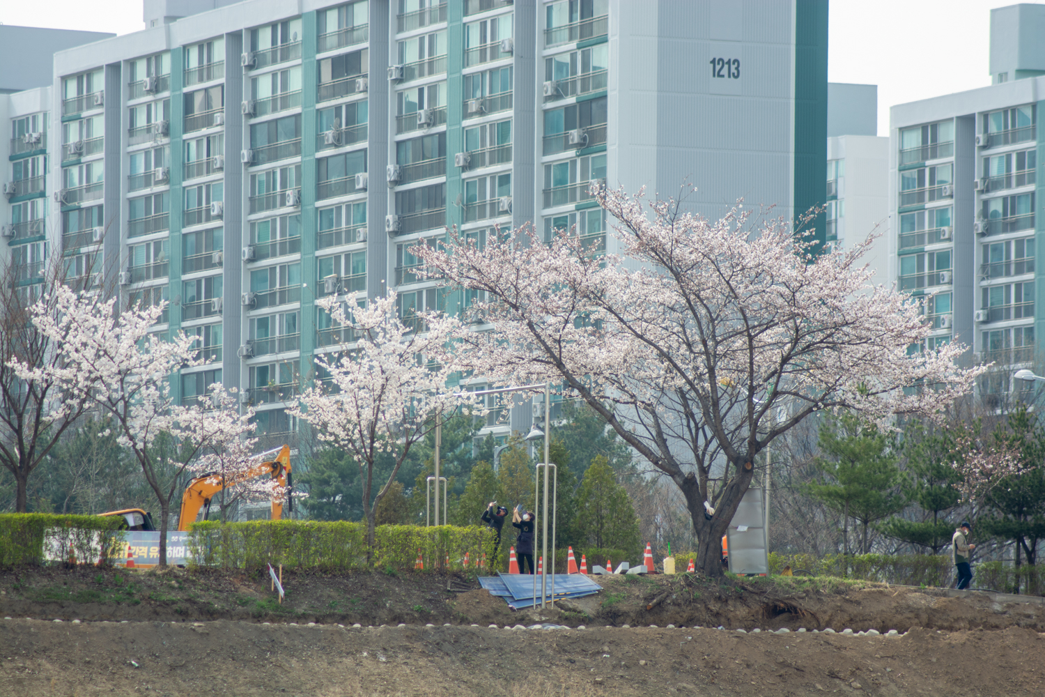 올해 1월은 너무 추웠습니다. 영하 10도 이하의 날씨가 수일간 지속되어서 해충들이 많이 죽었을 겁니다. 올해는 벌레 창궐이 덜할 듯하네요. 그러나 2월 날씨는 또 너무 더웠습니다. 이 2월 날씨가 포근해서 올해 벚꽃이 4월 초중순이 아닌 3월 말에 개화를 했습니다. 주말 내내 비가 와서 벚꽃 구경을 못 갔지만 지난 금요일 벚꽃을 담아왔습니다.