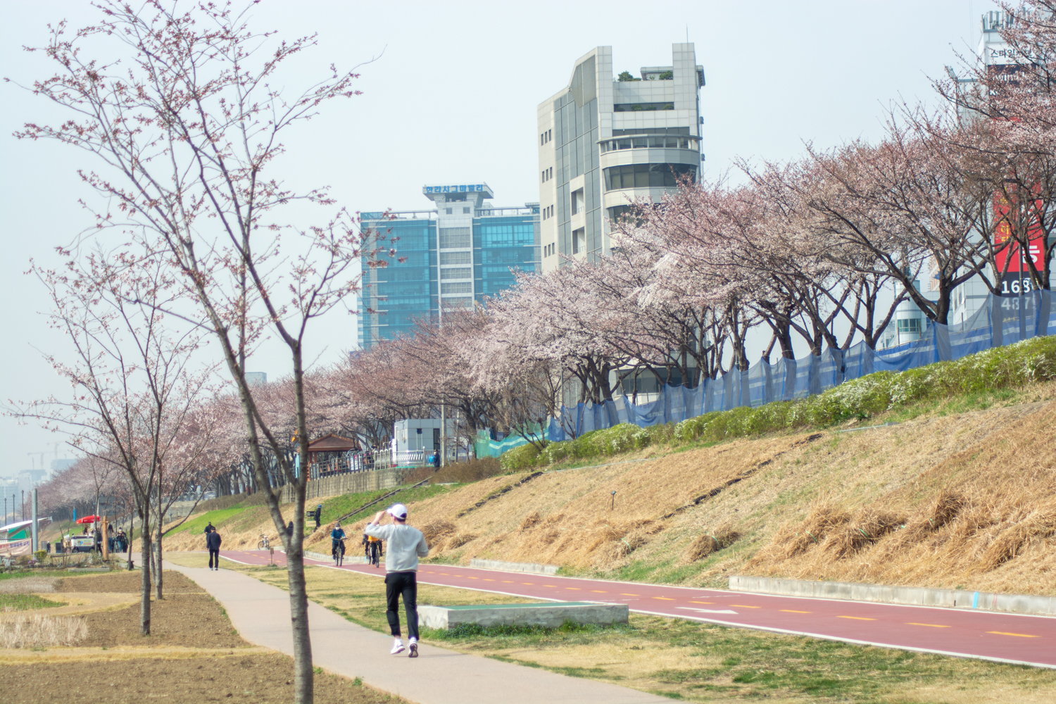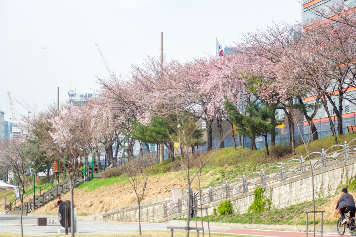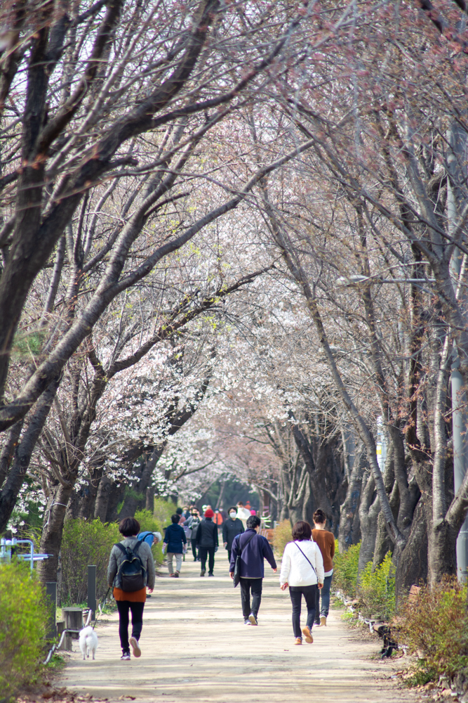 집 근처에 서울의 벚꽃명소 안양천에는 이제 막 몽우리 지고 꽃을 피우는 벚나무와 각종 봄꽃 나무들이 가득하네요.