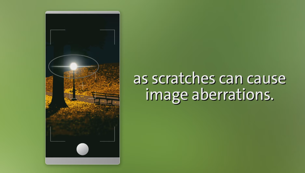 카메라만 툭 튀어나오다 보니 스마트폰을 집어 들다가 후면 카메라 쪽에 스크래치가 생기거나 카메라 렌즈 앞을 가리는 렌즈가 깨지는 현상이 발생하고 있습니다. 이에 고릴라글래스는 액정 디스플레이를 넘어서 후면 카메라 보호용 글래스인 고릴라 글래스 DX/DX+를 만들었습니다.