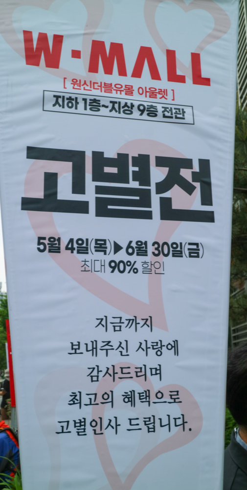 쭉 둘러보니 예상대로 고별전이라고 해놓고 고별하는 곳은 많지 않네요. 잘은 모르겠습니만 보통 마트나 백화점이나 대형 쇼핑센터들은 매출의 일정 부분을 수수료를 가져가는 방식입니다. 따라서 제품 판매량이 적어도 높은 임대료를 내지 않을 겁니다. 그래서 백화점이나 마트에 입점한 업체들은 임대료 고민을 크게 하지 않습니다.
