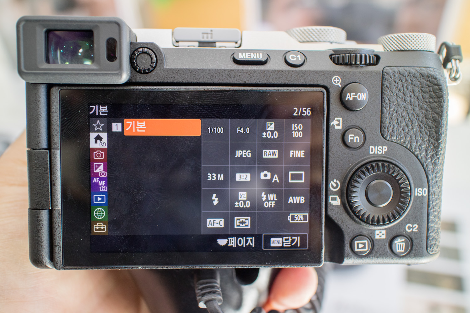 그런데 소니 A7C2는 좀 개선되었네요. 스마트폰처럼 홈 메뉴가 있고 카메라, 노출, 초점, 동영상 기능 등으로 잘 묶어 놓았네요. 이전보다 꽤 좋아지고 편리해졌지만 여전히 복잡하네요. LCD는 전작처럼 스위블 회전 LCD입니다. 터치 AF가 가능하고 심지어 터치 메뉴도 가능합니다. 최근에 나온 소니 카메라들은 캐논 카메라처럼 터치로 메뉴 변경이 가능합니다.