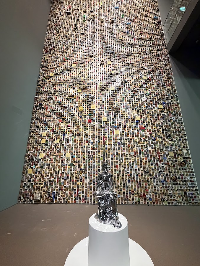 가장 눈에 확 들어오고 쉬운 작품은 강익중 작가의 삼라만상입니다. 은색 반가사유상 뒤에 삼라만상이 펼쳐져 있습니다.